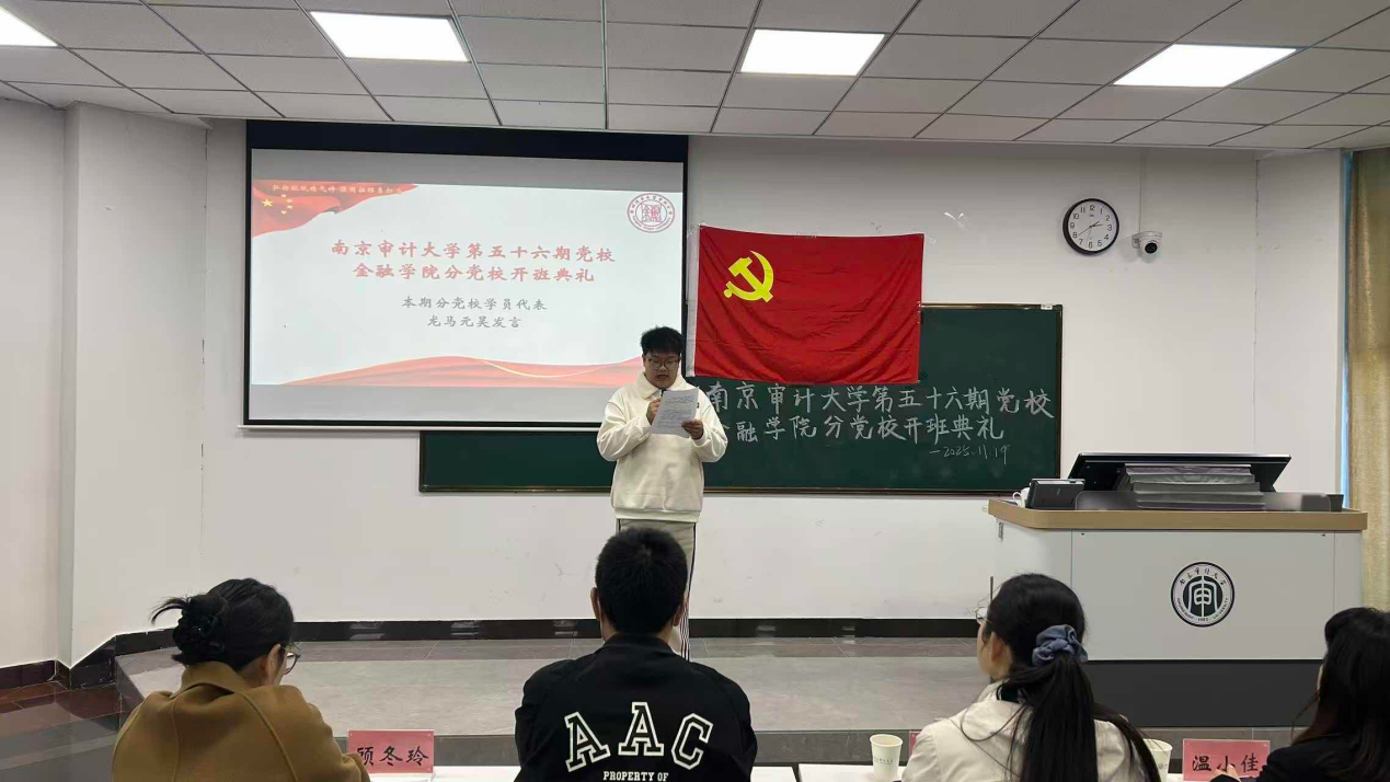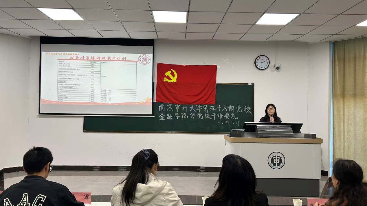 11月19日,南京审计大学第五十六期党校海角社区 分党校开班典礼于致明楼报告厅顺利举行。